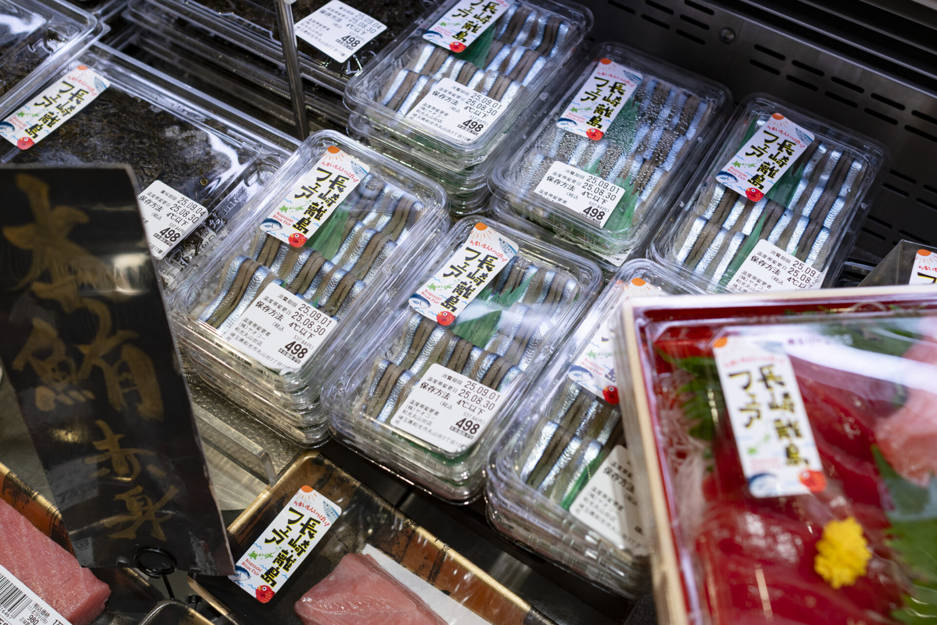 本マグロは赤身も中トロも揃う贅沢さ。その本マグロにきびなご、真鯛、イカ、大鉢マグロが載った「限定盛合せ」は、小さなパックから大きな盛り合わせまで用意されていたほか、毎回のフェアで人気だというきびなごのお刺身も十分にあり、お客さまの多様なニーズに応えられていたのが印象的でした。