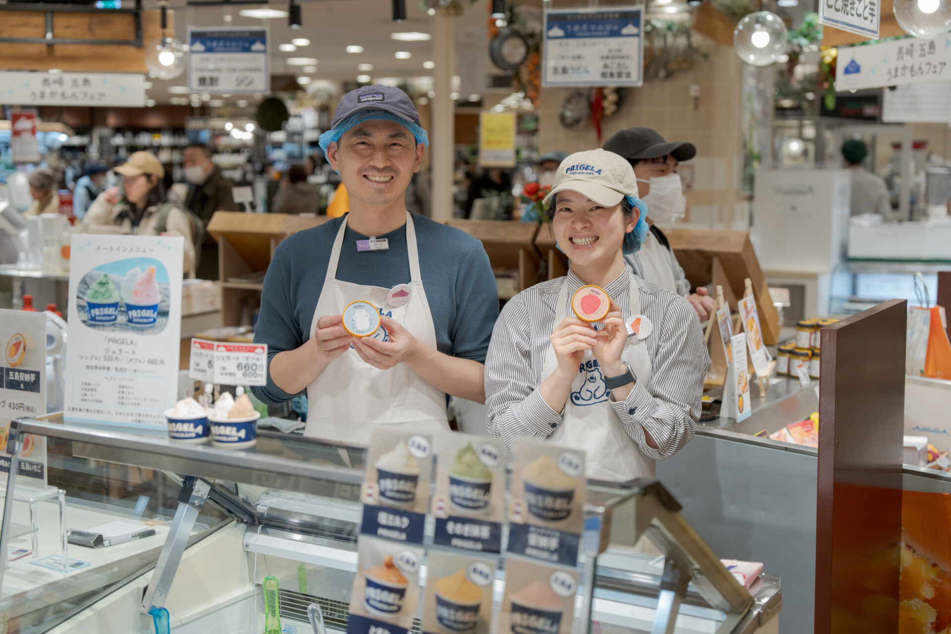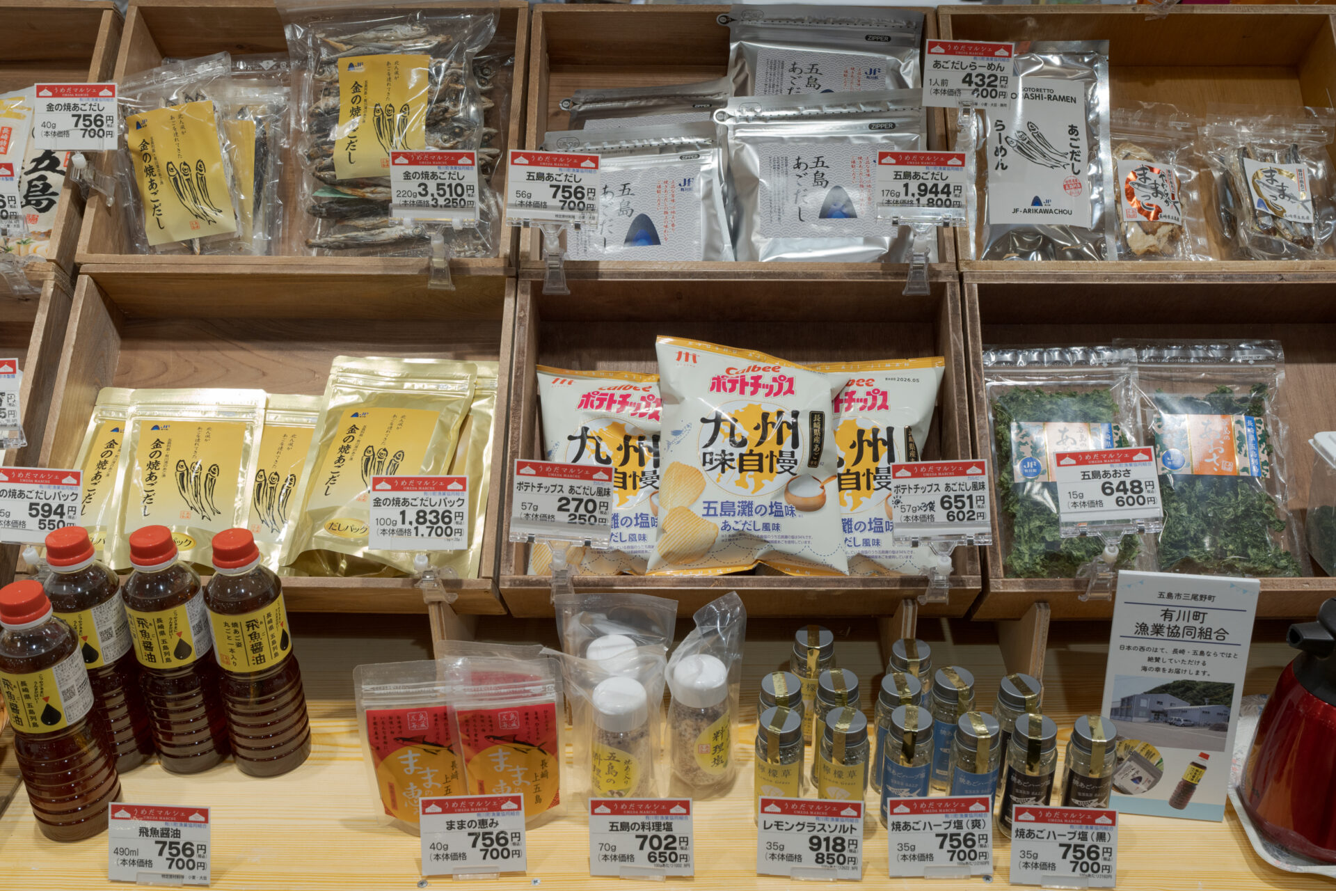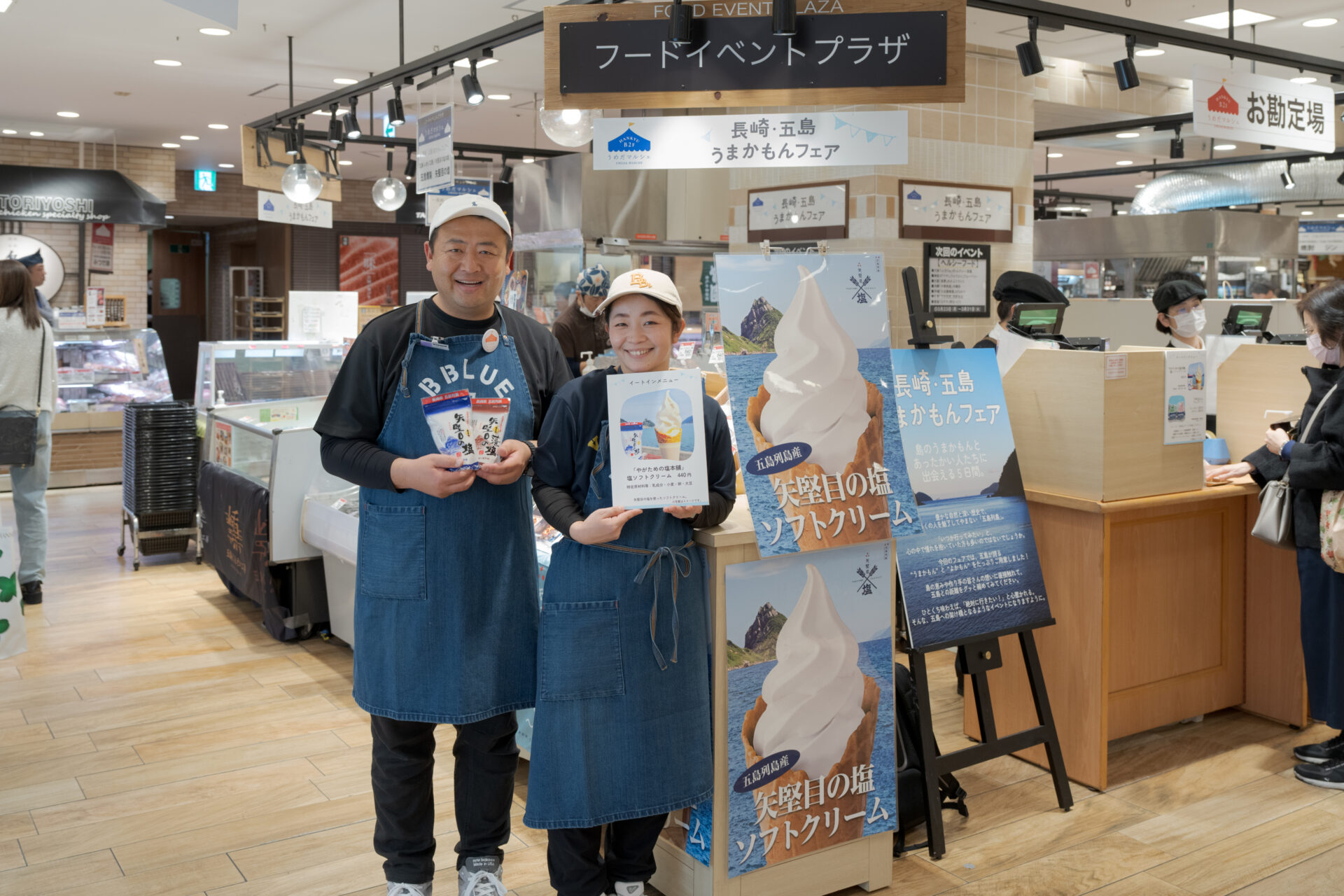 販売・催事 大阪・阪急うめだ本店で「長崎・五島 うまかもんフェア」開催! 長崎 阪急うめだ本店 阪急阪神百貨店 五島 2026年3月18日(水)~22日(日)の5日間、阪急うめだ本店地下2階フードイベントプラザにおいて、長崎・五島列島のおいしい魅力を紹介する祭典「長崎・五島 うまかもんフェア」が開催されました。 恒例となったこのフェアを楽しみにしてくださっているお客さまも多く、今回も大盛況。 今回は大々的に、精肉・鮮魚のテナントとの連携もはからせていただきました。 出展した生産者も手ごたえを感じる充実の5日間でした。