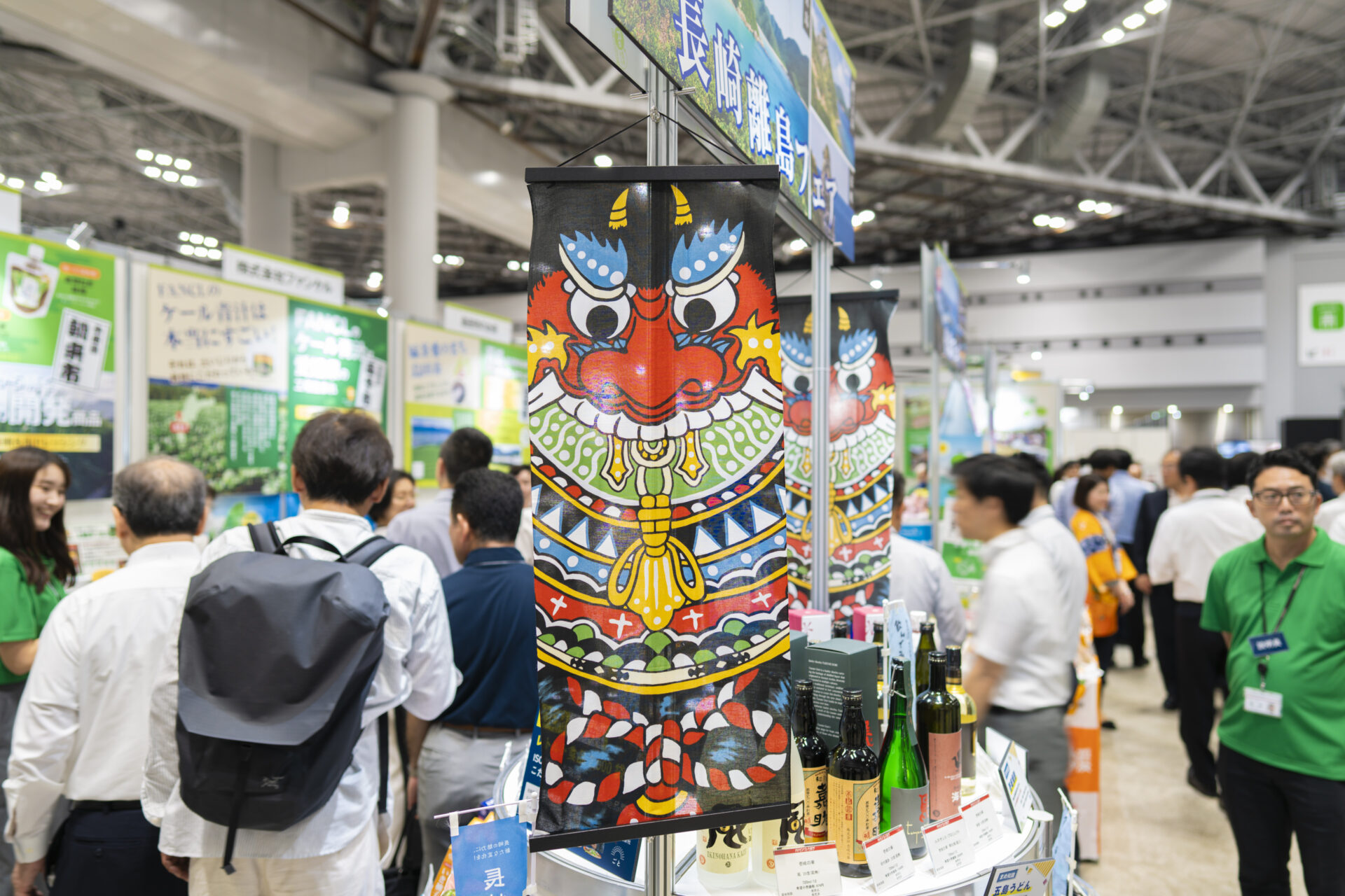 商品への理解を深める「まめ知識」や、ばらもん凧のタペストリーが場に花を添え、たくさんのご来訪のみなさまが商品を手に取り、担当者の説明に耳を傾けていました。