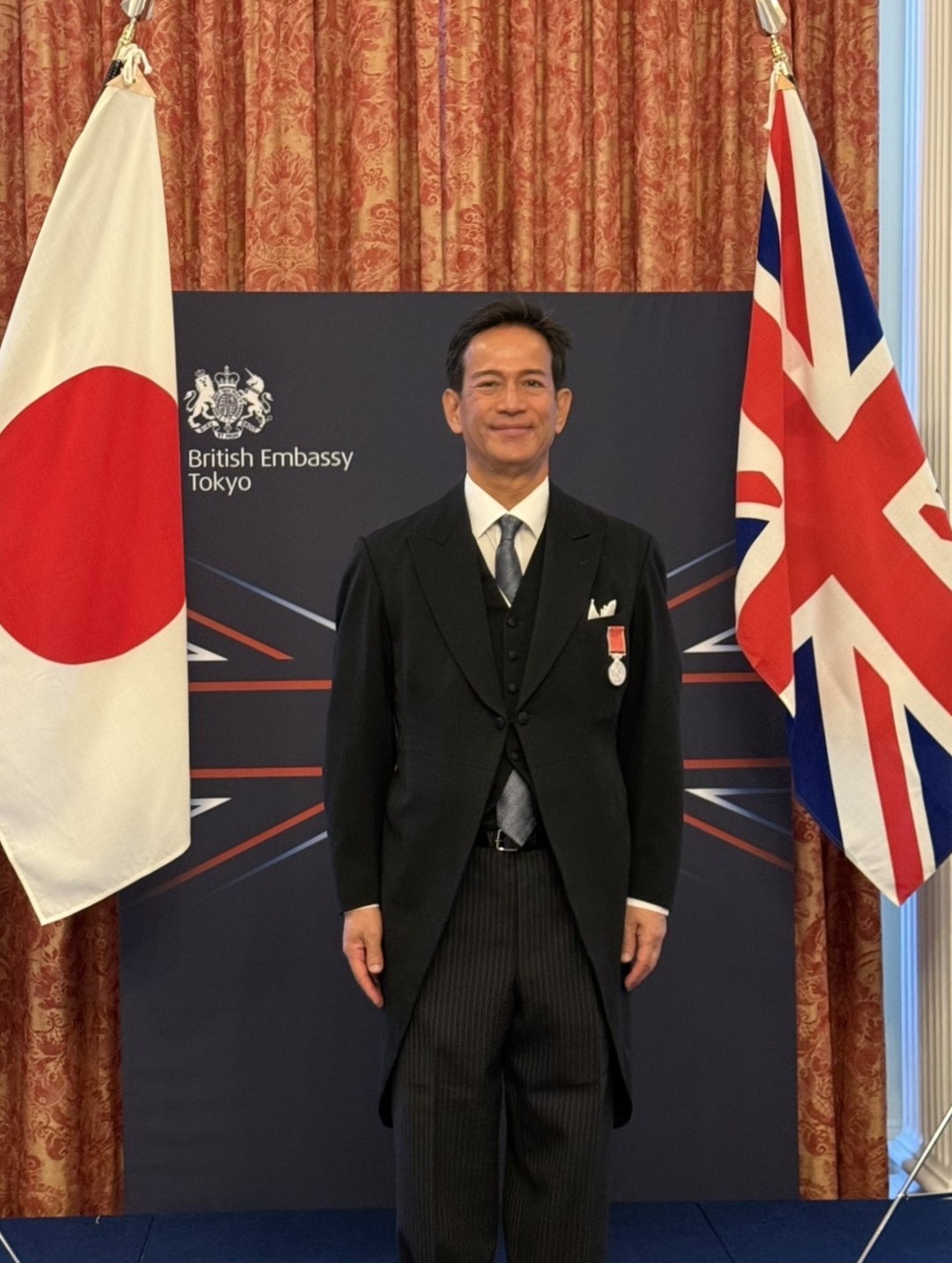当協会理事の舘 逸志 氏はこのたび、英日間の人的交流促進への貢献からチャールズ3世国王陛下より名誉大英勲章(BEM=British Empire Medal)を授与され、その叙勲式が11月7日(金)、駐日英国大使館(在東京)において執り行われました。