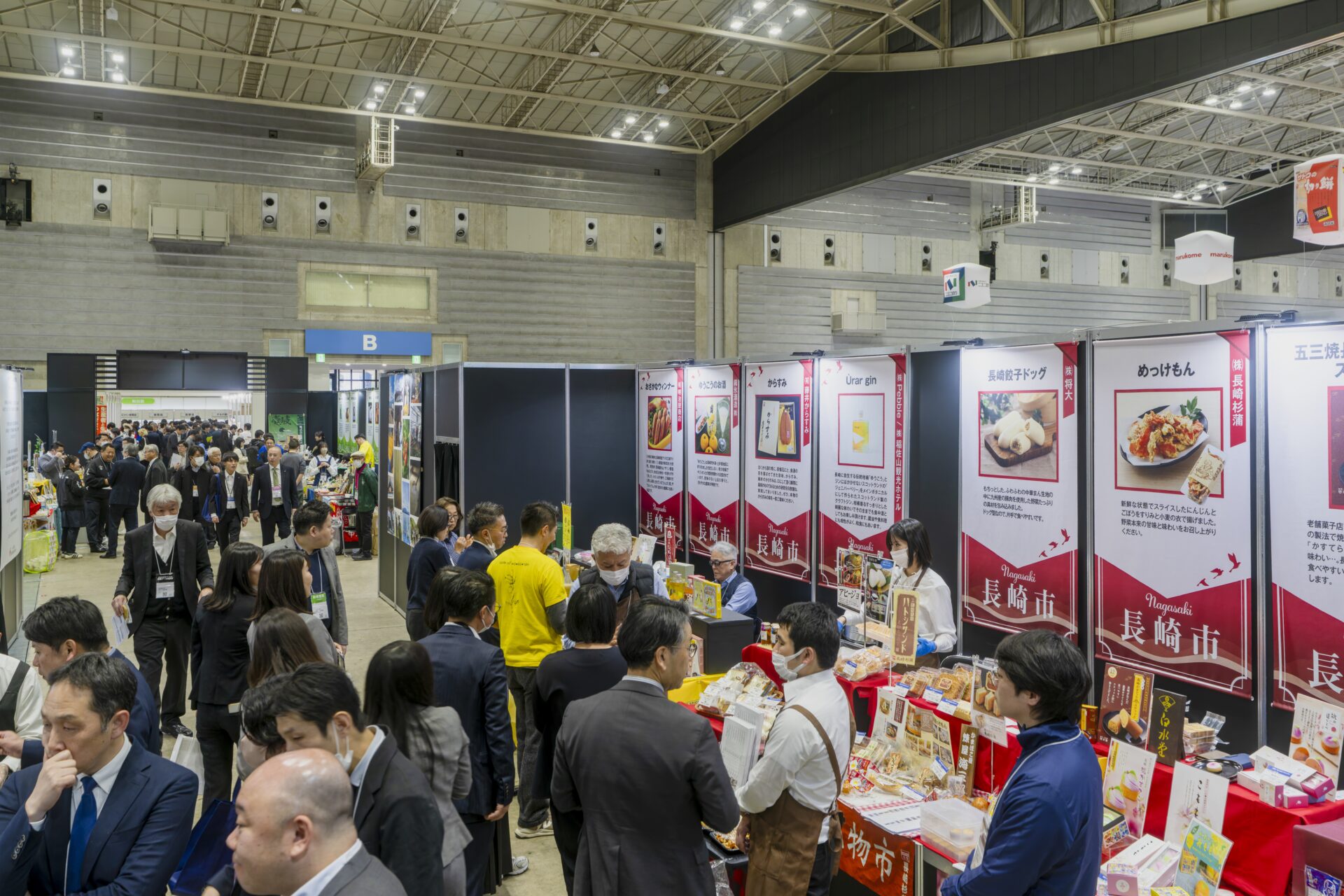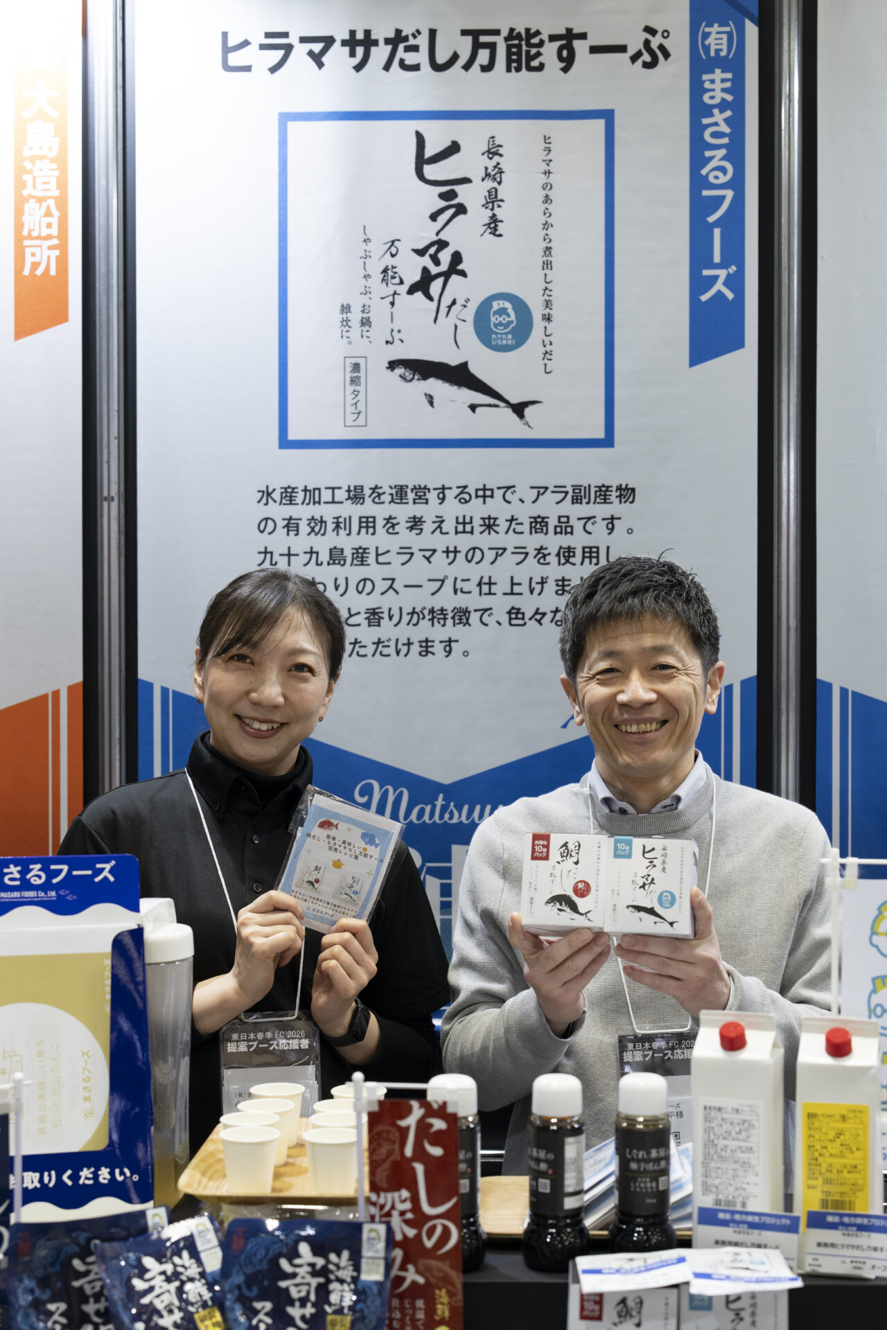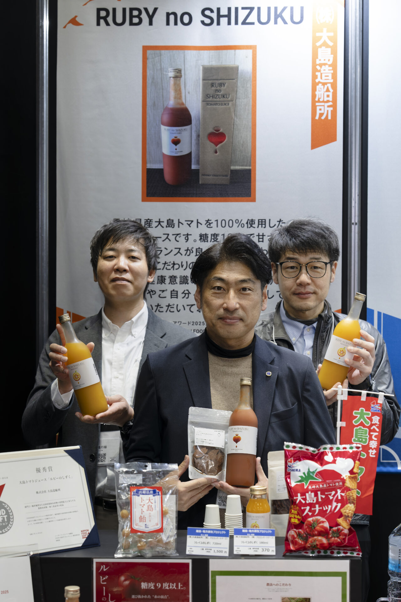 Bホールに設けられた協会のブースは、初の試みとして「離島プロジェクト」「地方創生プロジェクト」の2つのエリアに分かれ、離島プロジェクトエリアには五島、新上五島、壱岐の21生産者(社)が、地方創生プロジェクトエリアには西海市、島原市、長崎市、松浦市から18生産者(社)が出展。総勢39の生産者(社)が、長崎の自然と人が作り出す豊かな「長崎の食」をアピールしました。