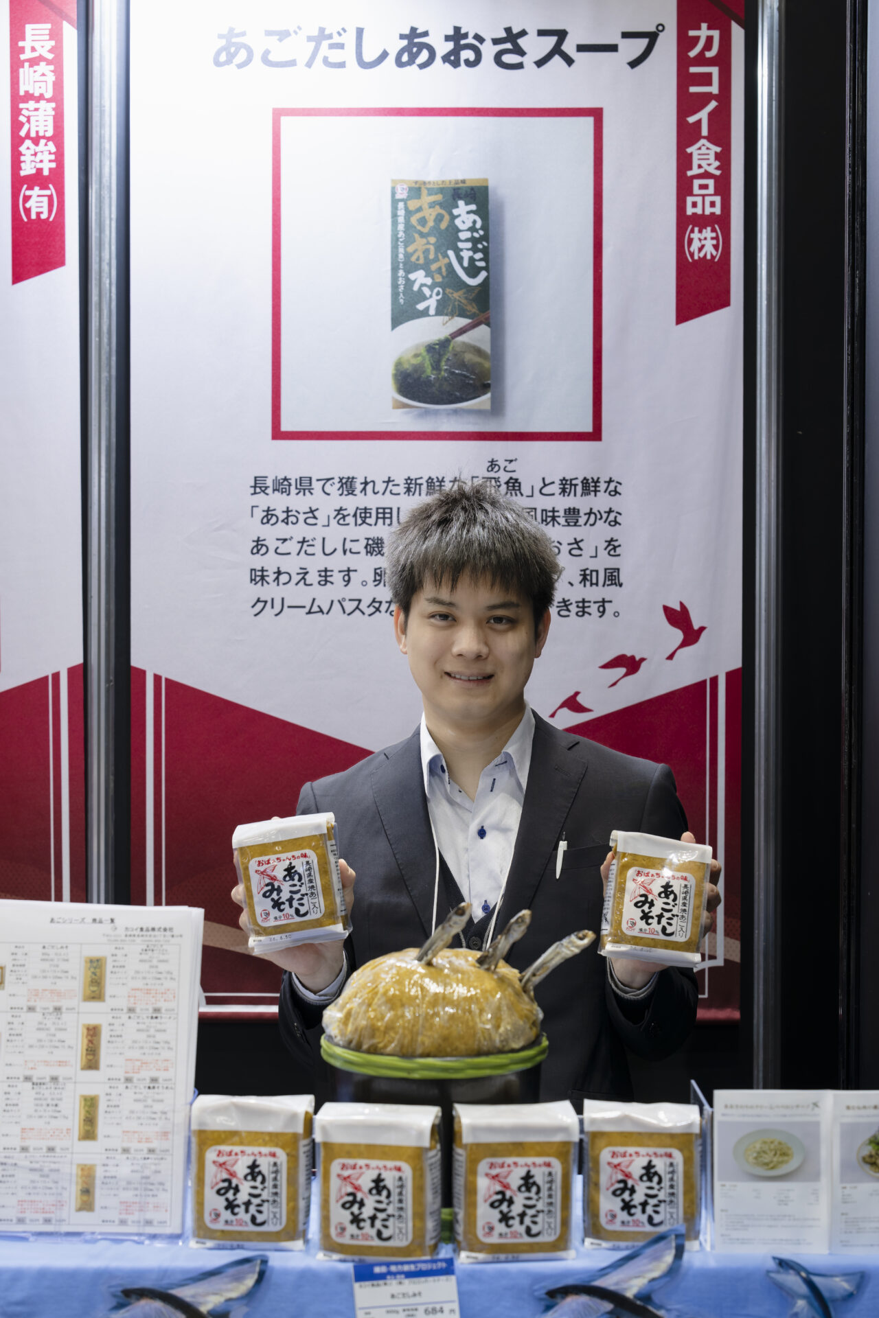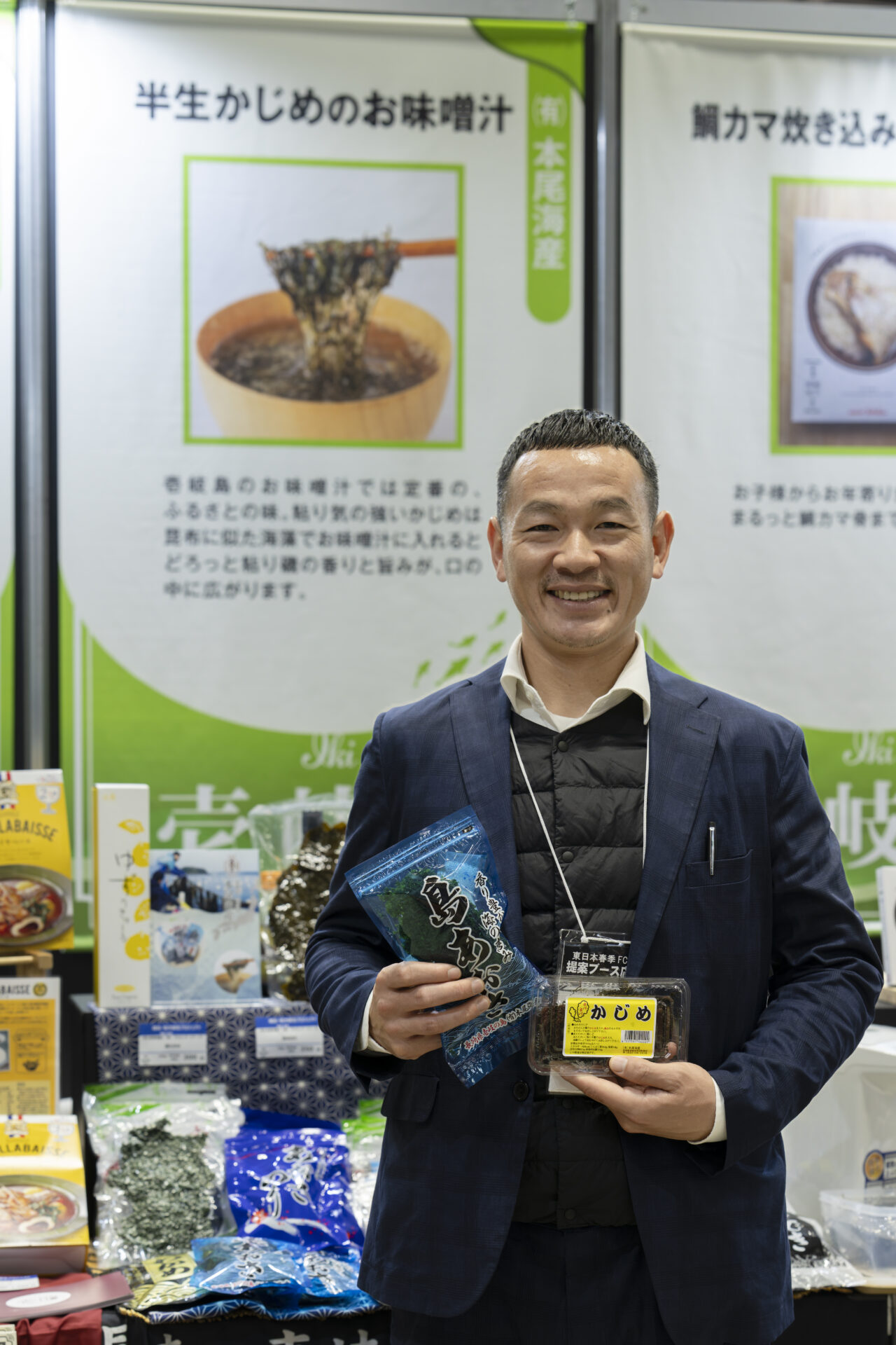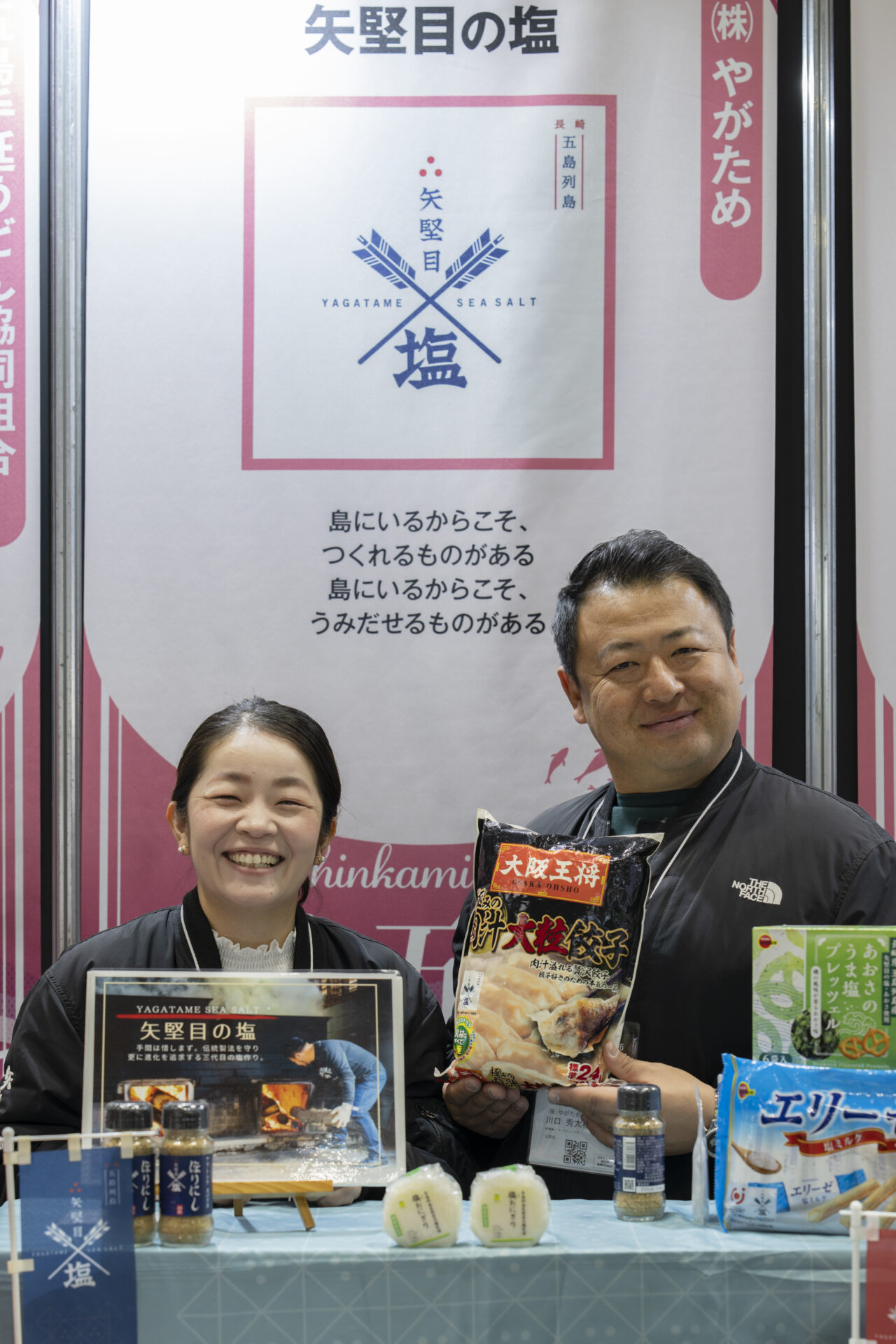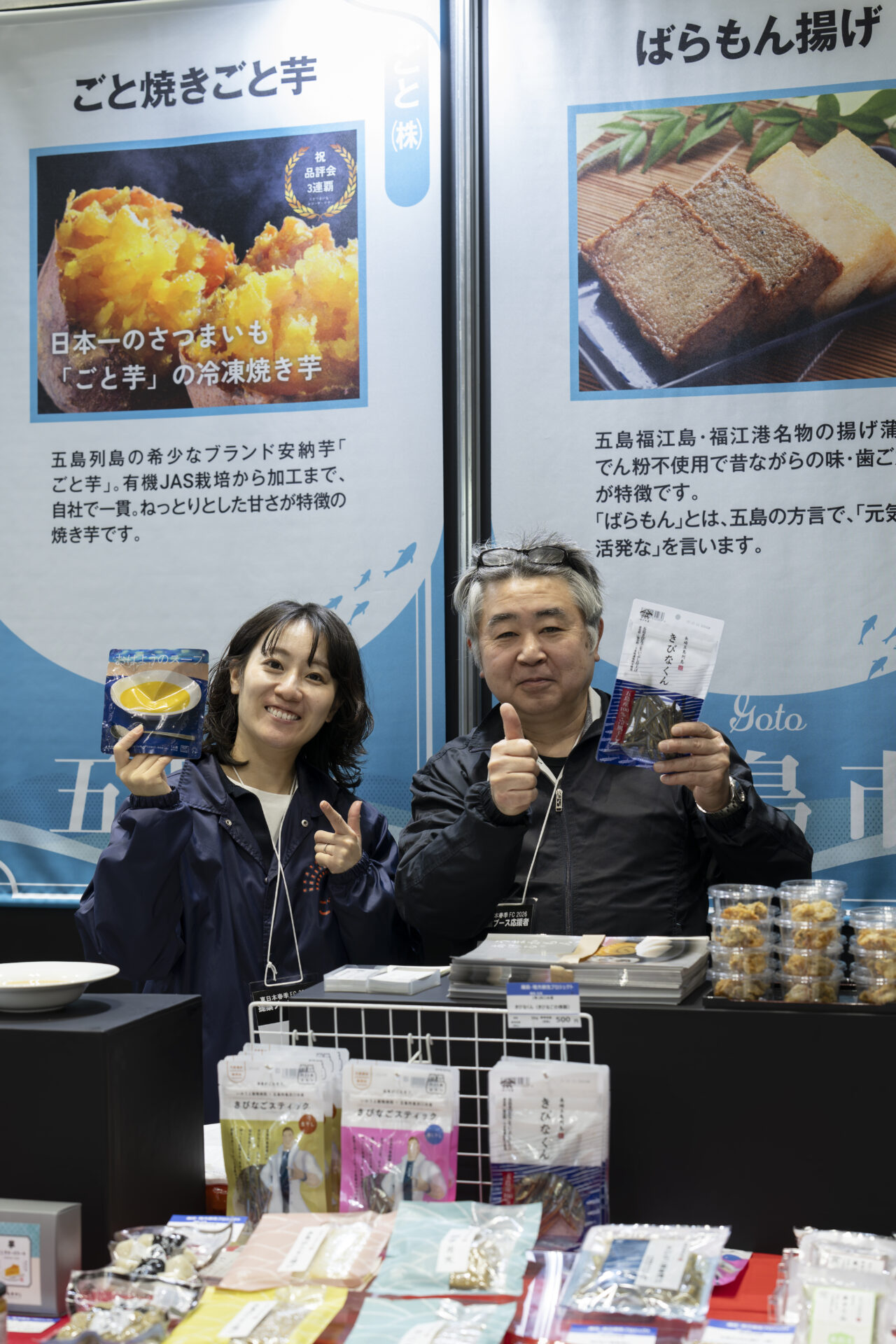 Bホールに設けられた協会のブースは、初の試みとして「離島プロジェクト」「地方創生プロジェクト」の2つのエリアに分かれ、離島プロジェクトエリアには五島、新上五島、壱岐の21生産者(社)が、地方創生プロジェクトエリアには西海市、島原市、長崎市、松浦市から18生産者(社)が出展。総勢39の生産者(社)が、長崎の自然と人が作り出す豊かな「長崎の食」をアピールしました。