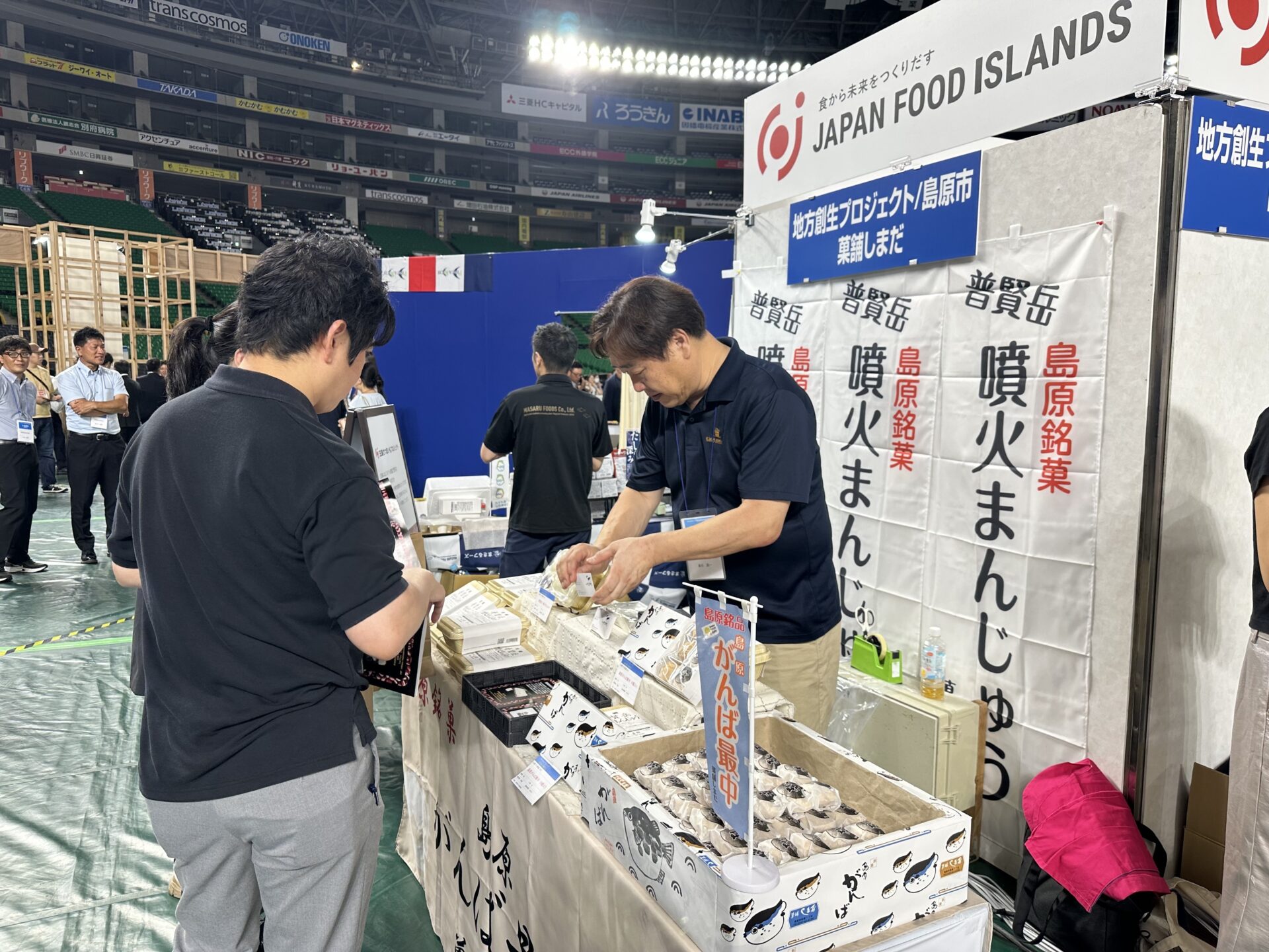 会場中央に設置された「長崎 離島振興地方創生協会」ブースには、長崎離島の対馬市、壱岐市、五島市、新上五島町に加え、今回初参加となる本土の長崎市、島原市、松浦市から、合わせて30の生産者が出展。