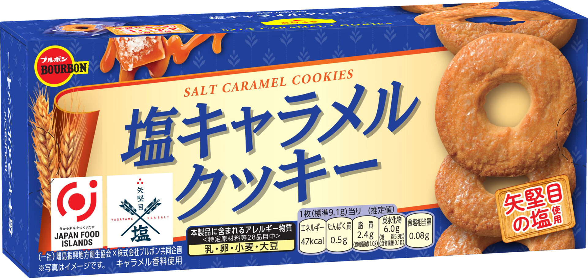 (株)ブルボンの「塩キャラメルクッキー」に「矢堅目の塩」が使われるようになりました。